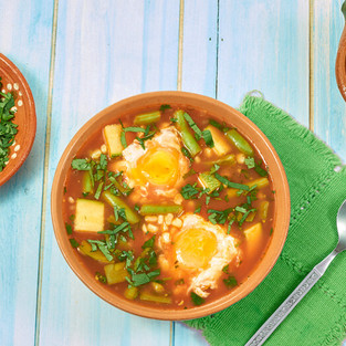 Agregar uno por uno los huevos sobre el caldillo caliente, cocinar por 6 minutos a fuego medio. Agregar 1 cucharada de cilantro picado.